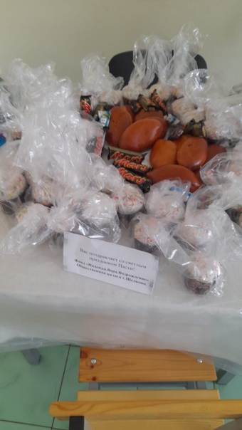 Были переданы пасхальные куличи, сладкие подарки, открытки, сделанные руками школьников и детьми из дошкольных учреждений. Молодые волонтеры, профессионально занимающиеся музыкой, выступили с концертом.