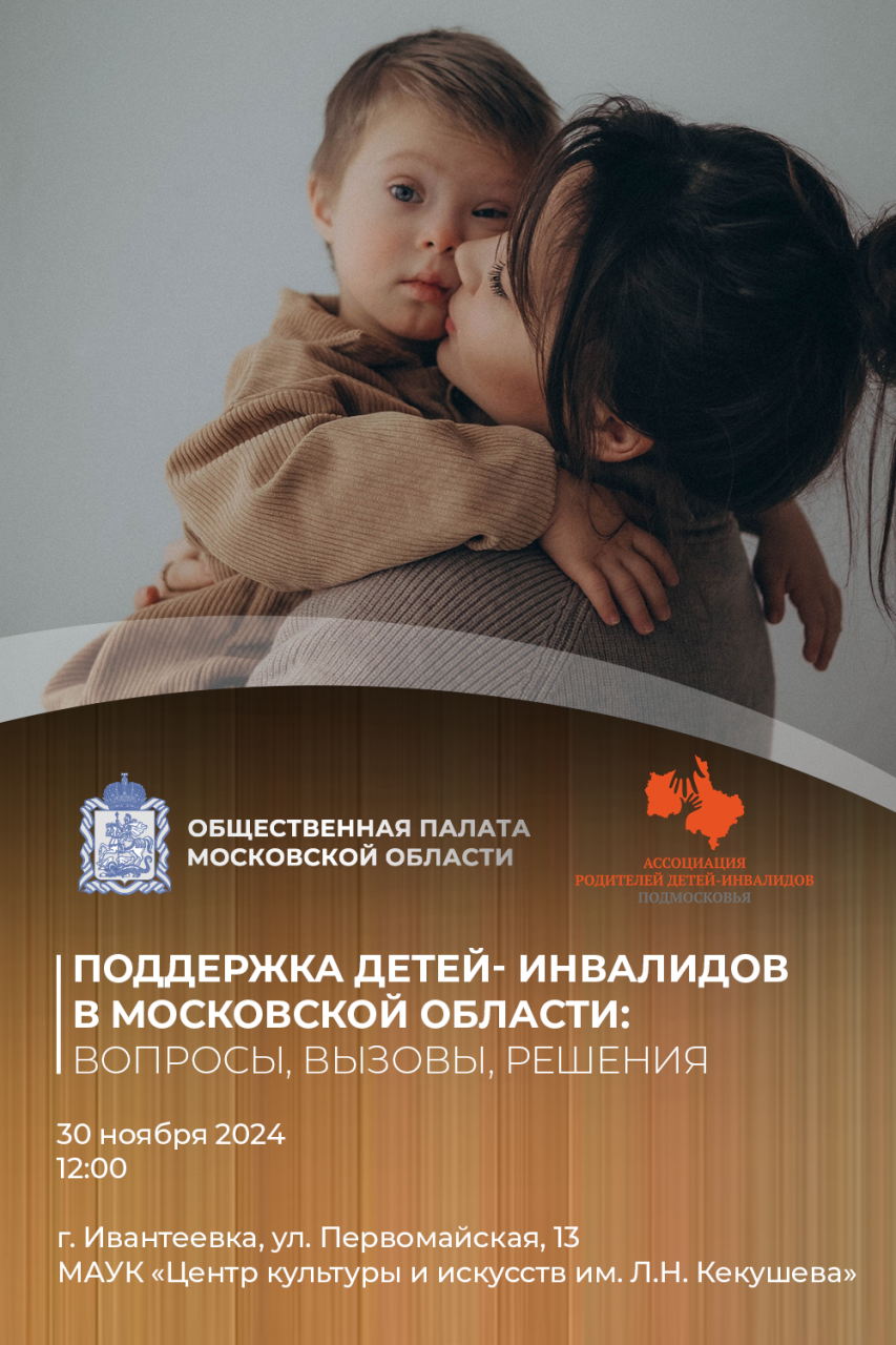 30 ноября 2024 года в Ивантеевке Комиссия по доступной среде и развитию инклюзивных практик Общественной палаты Московской области проведет Форум «Поддержка детей-инвалидов в Московской области: вопросы, вызовы, решения».