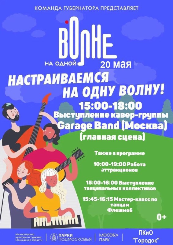 В проекте участвует и парк «Городок» в Рузе. 20 мая там состоится концерт крутой кавер-группы Garage Band.