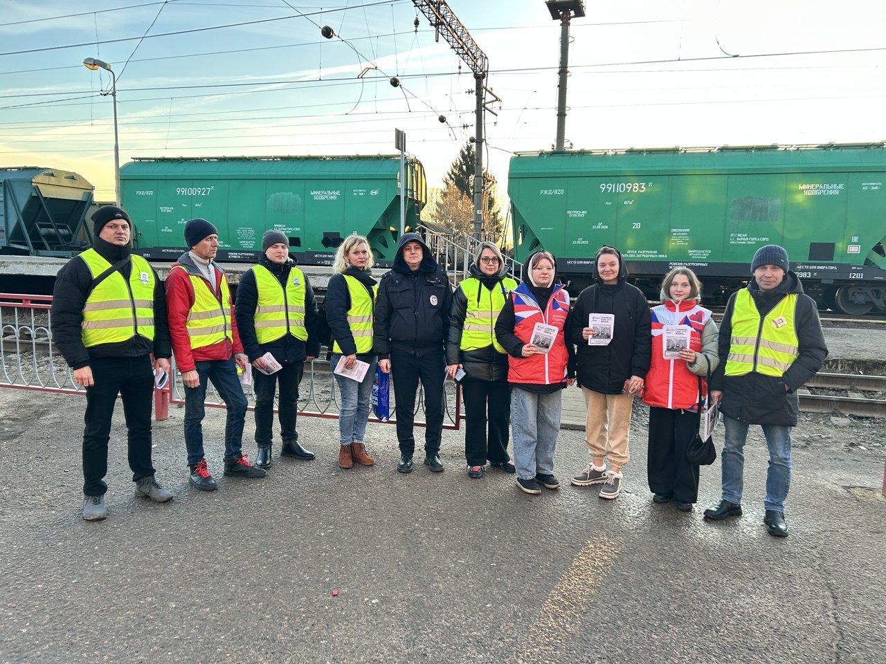 Пассажирам раздали листовки с информацией о безопасности поведения на железнодорожных путях, а также светоотражающие браслеты.