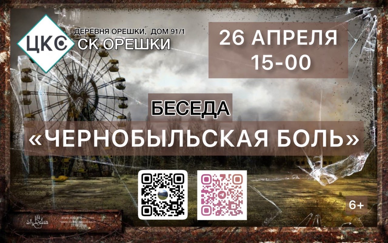 26 апреля в Орешкинском сельском клубе Рузского городского округа состоится беседа «Чернобыльская боль».