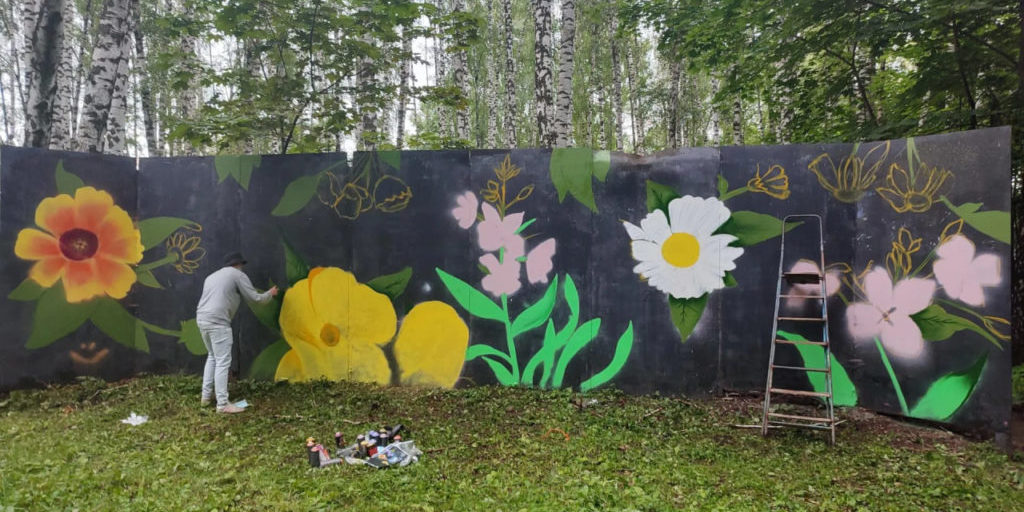 Изначально руководство «Городского парка» разработало вместе со стрит-арт художником из Каширы Иваном Карамновым эскиз из ярких летних цветов. Художник нанёс контур на стену, которая находится рядом со скейтпарком. После этого любой желающий мог выбрать понравившуюся ему краску и разукрасить элементы узора согласно цветовой схеме.