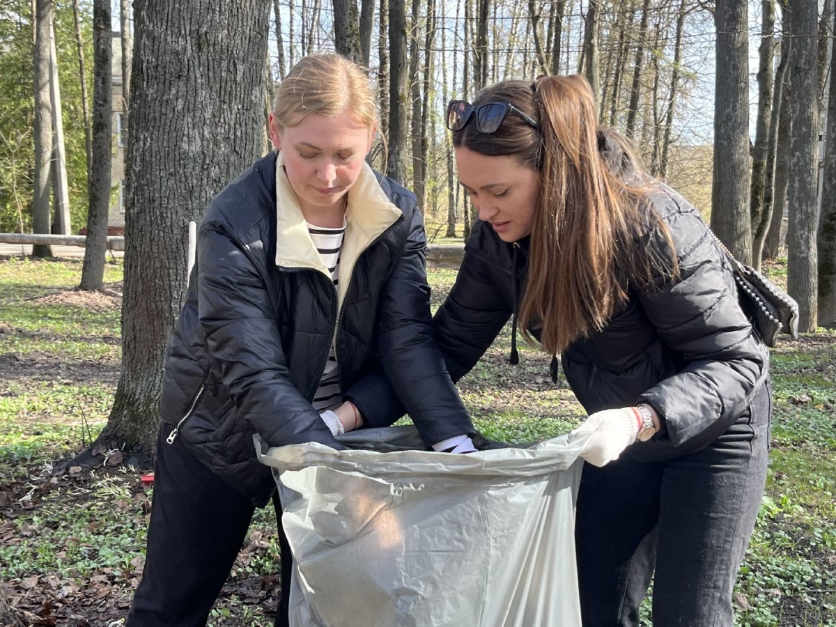 Фронт работ определён заранее: собрать прошлогодние листья, которые укутывали корни деревьев зимой. Теперь их — в пакеты, и «на выброс».