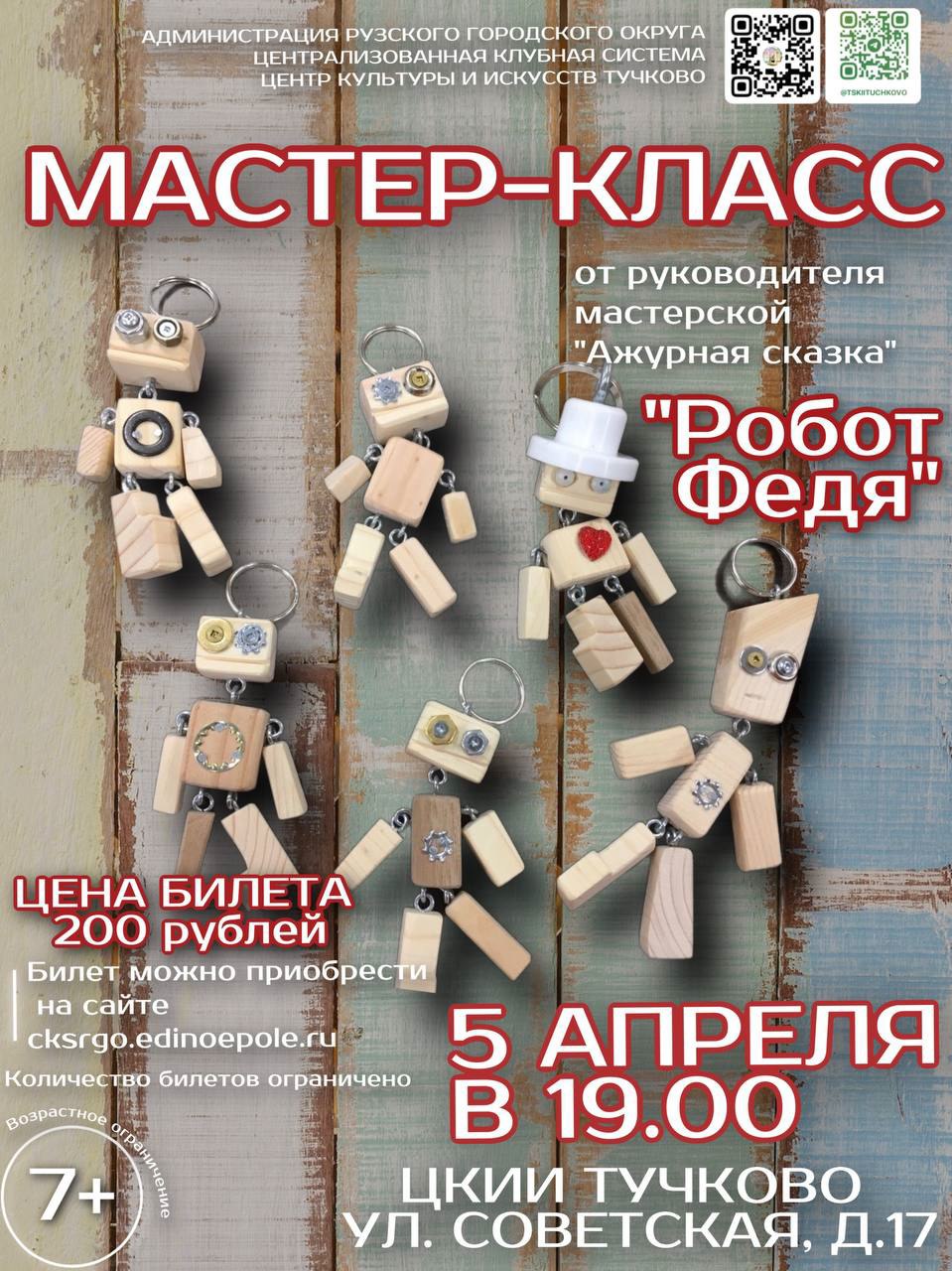 5 апреля в Тучковском центре культуры и искусств Рузского городского округа состоится мастер-класс по декоративно-прикладному искусству "Робот Федя".