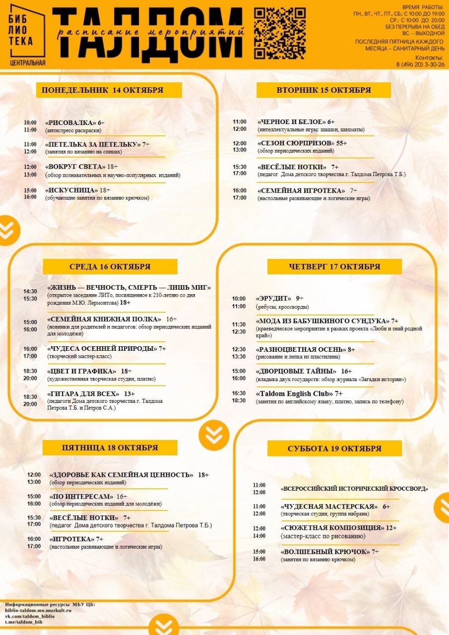 Культурные события в Талдоме с 14 по 19 октября
