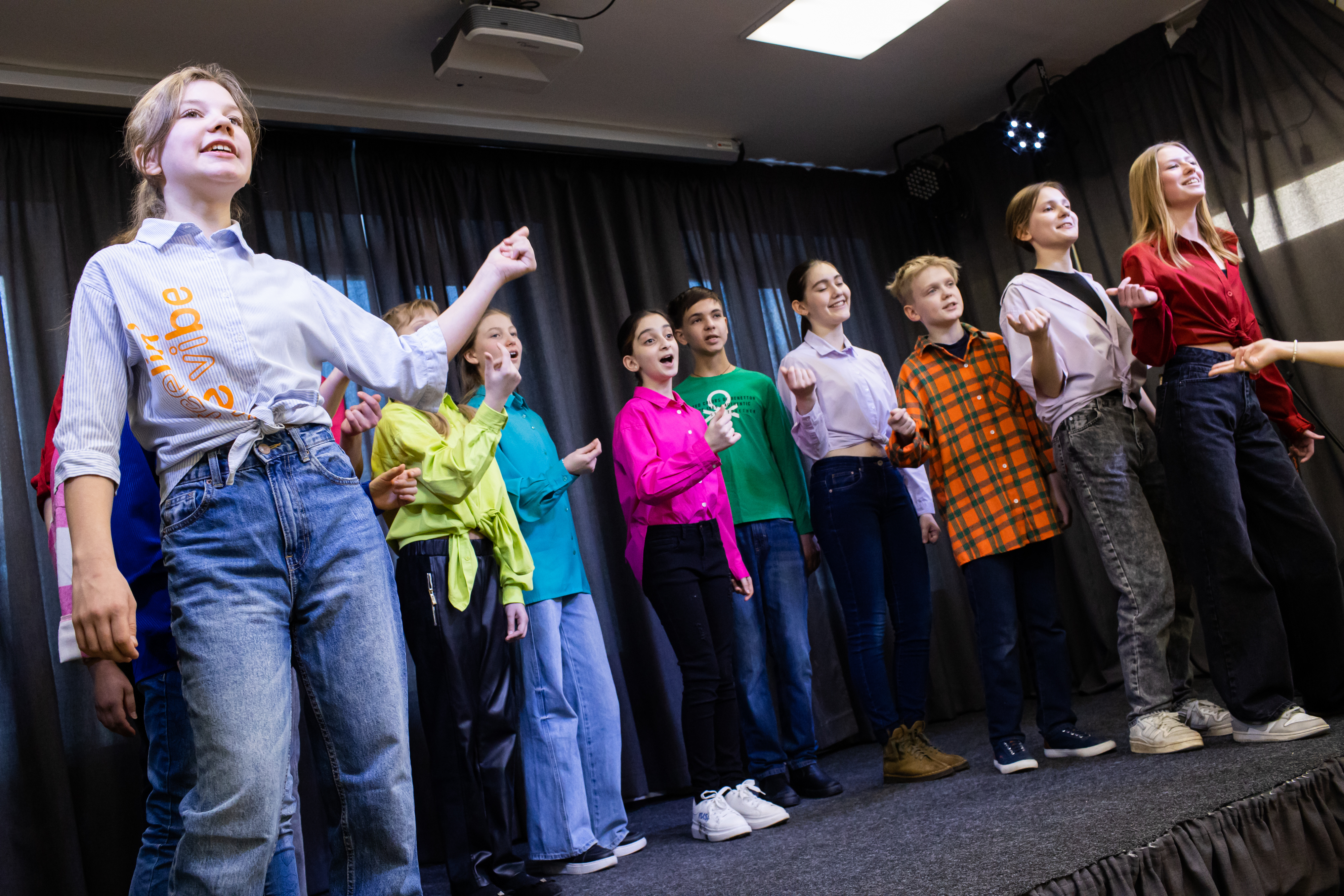 Часть номеров исполняли под минус, часть – под «живую» музыку фортепиано. Не обошлось без неожиданностей. В середине песни «Куда уходит детство» неожиданно пропал минус. Солистка Софиа Ктикян не растерялась и продолжила петь, а мгновение спустя за рояль села концертмейстер ТДШИ Дарья Лоскутова – ей понадобилась секунда, чтобы сориентироваться и подхватить до этого ни разу не игранную ею мелодию.