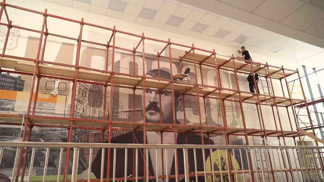 Сегодня специалисты по художественному оформлению завершили работу над панно, которое украшает стену актового зала над центральным входом.