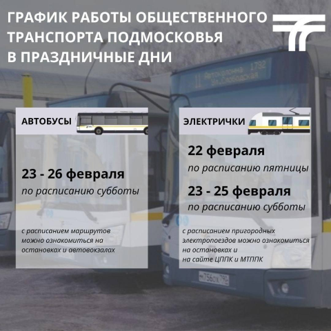В ПРАЗДНИЧНЫЕ И ВЫХОДНЫЕ ДНИ ИЗМЕНИТСЯ РАСПИСАНИЕ ОБЩЕСТВЕННОГО ТРАНСПОРТА ПОДМОСКОВЬЯ