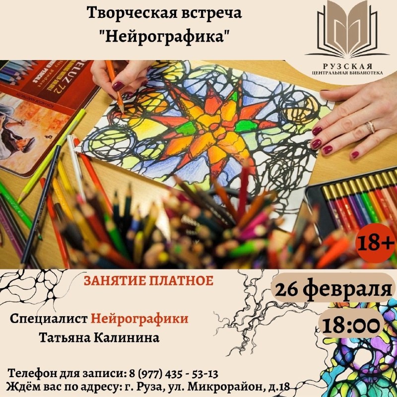 Рузская центральная библиотека приглашает всех желающих на мастер-класс по нейрографике 26 февраля в 18:00.