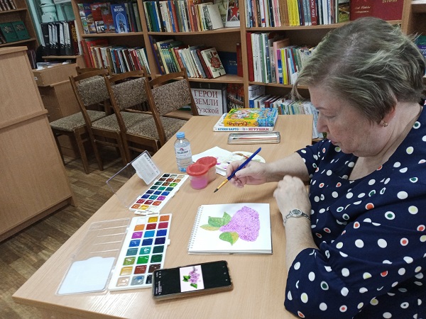 В изостудии «Чердак» Рузской городской библиотеки рисовали букет сирени.