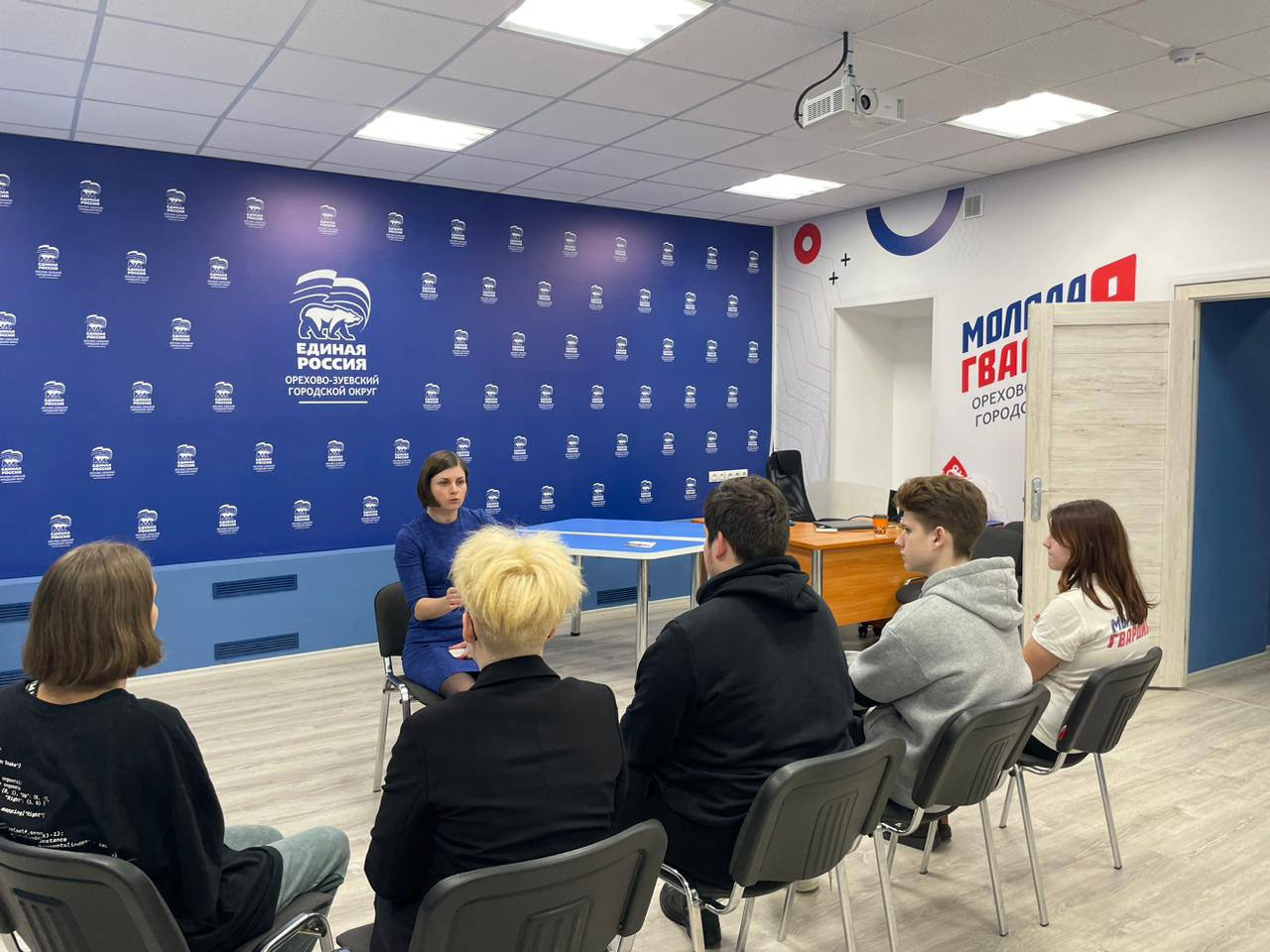 В Центр объединения гражданских инициатив « ЕДИНЫЕ », который функционирует на базе общественной приёмной местного отделения партии "Единая Россия", обратились представители «Молодой Гвардии» с просьбой организовать встречу с руководителем фракции партии «Единая Россия» в Совете депутатов Орехово-Зуевского округа Екатерина Артемова.
