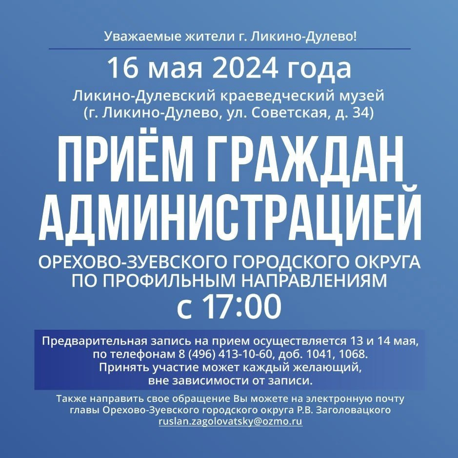 16 мая выездная администрация пройдёт в городе Ликино-Дулёво.