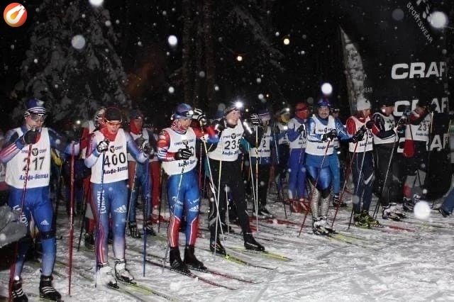 Ночная лыжная гонка «ГОЭЛРО» стартует в 17:00. Спортсмены бегут с налобными фонариками.